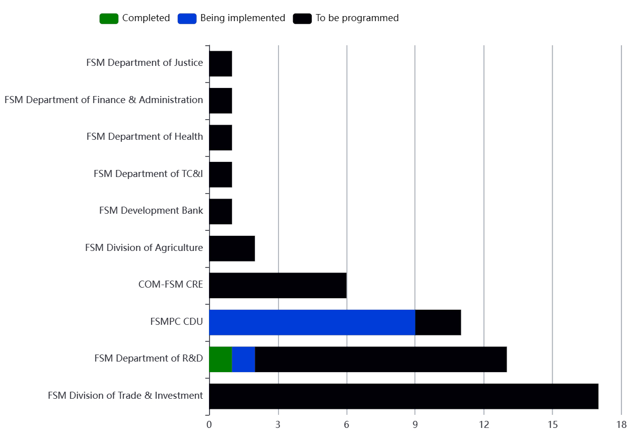 The CocoNES implementation is underway where 2 of the 10 implementing entities (FSM R&D and Vital-FSMPC) have initiated certain tasks under their assigned Plan of Actions (PoA). The Secretariat is working with other implementing entities to start moving their PoA tasks forward.